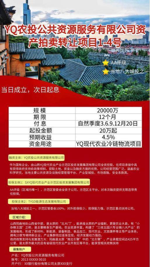 刘巍提供的贵府败露,这次融资的资金用途为阳曲当代农业冷链物流表情,募资金额所有这个词2亿元,投资起步门槛为20万元,本旨1年期限内予以4.5%的年化固定收益,并保险到期保本回购。
