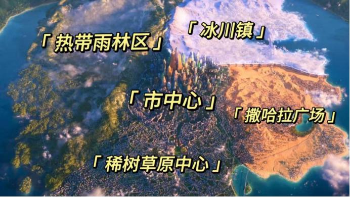(动物城“ Zootopia ”被“景色墙”分隔的不同区域)