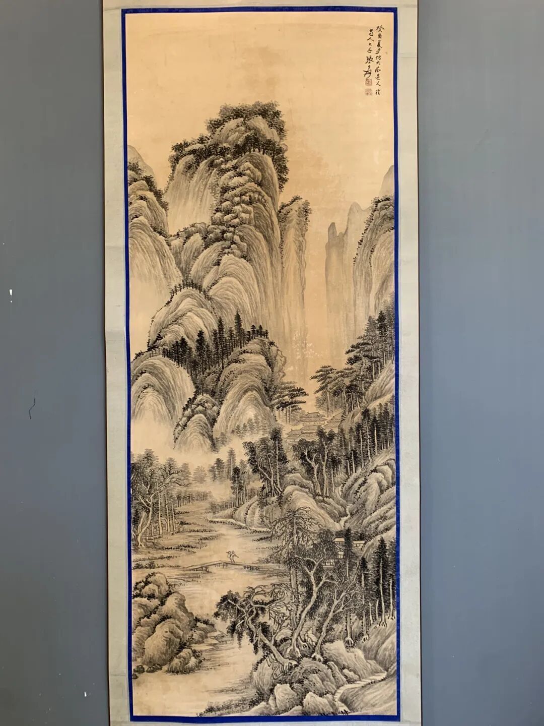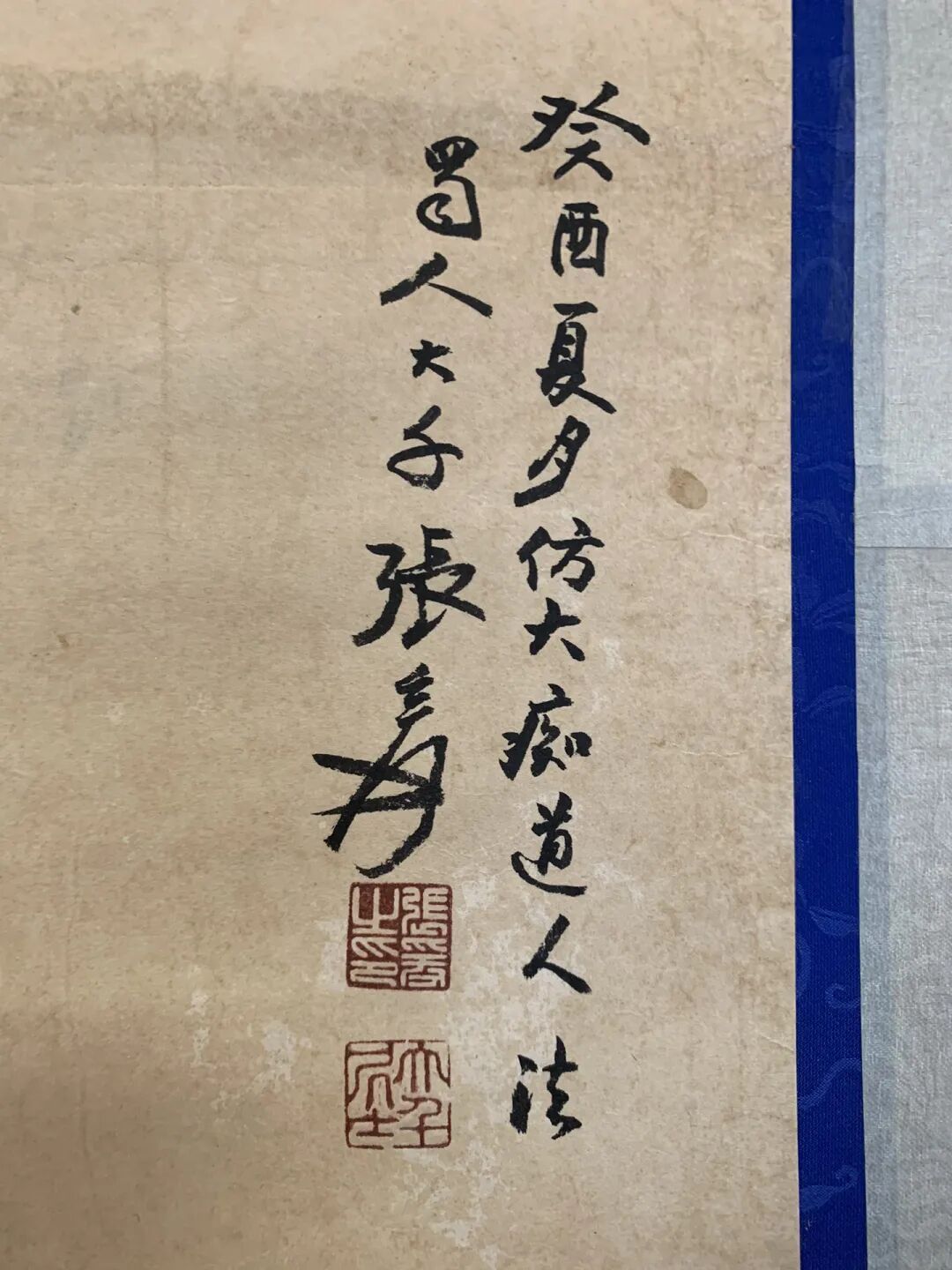 最妙的是题款——“仿大痴说念东说念主法”,张大千没藏着掖着,但题名位置偏右上角,像突出留白,让不雅者视野先被山劝诱,再顺着题款往上走,临了停在空缺处,仿佛在说:“古法是根,但我的画,得你我方品!”这哪是“仿”?分明是借古东说念主的壳,装我方的新酒,喝着是黄公望的味,试吃却是张大千的劲儿!