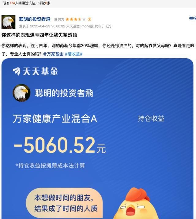 其中,万家健康产业搀杂A是其料理时辰最长的家具,任职薪金达-37.39%,自2022年12月以来年化收益率为-14.83%,最大回撤45.49%,远低于同期医药主题基金平均水平,鸿沟从2023年巅峰时期的7.59亿元缩水超94%,仅剩0.44亿元,有基民直言“连亏四年让我失望彻底”。值得持重的是,该家具2026开年两周曾斩获26.55%的收益,但未能调动弥远耗费的神气。有基民褒贬称,惨酷查询该家具是否有老鼠仓存在。