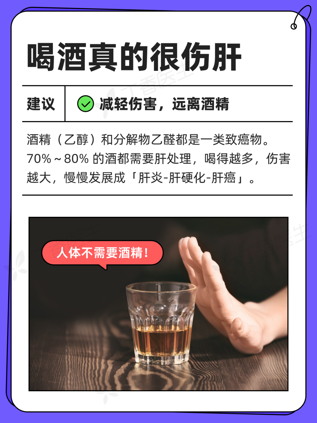 喝酒伤肝!喝酒伤肝!喝酒伤肝!乙醇是 I 类致癌物,每一滴齐无益。